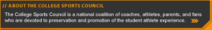 After almost a decade leading the fight to reform Title IX enforcement, the College Sports Council (CSC) today announced that it was changing its name to the American Sports Council (ASC) effective immediately. CSC launches Saving Sports Blog Our new Blog will serve as an ongoing, regularly updated online newsletter that chronicles the CSC position on Title IX issues and emerging developments. Study shows Historically Black Colleges and Universities struggle to meet Title IX's proportionality test. A study by the College Sports Council shows that, due to their student gender ratio approaching 2-1 female to male, nearly all of the nation's Historically Black Colleges and Universities (HBCUs) are out of compliance with Title IX's proportionality standard. Click here for supporting data. CSC Issues National Appeal for "Common-Sense Reform" of Title IX Washington, D.C., June 23, 2008 -- The College Sports Council and the Independent Women's Forum issued a national appeal on the 36th anniversary of the passage of Title IX calling on men and women to work together to effect "straightforward and common-sense" reform to the law's enforcement mechanism in college athletics. Olympic Greats John Naber, Peter Vidmar, Dan Gable and Cael Sanderson join with Actor Billy Baldwin Calling for 'Common Sense' reform of Title IX Washington, D.C., August 4, 2008 Over 25 U.S. Olympians and over 35 NCAA Champions have endorsed a College Sports Council petition calling on the U.S. Congress to enact common sense reform of the federal regulations governing Title IX compliance. College Sports Council Praises U.S. Civil Rights Commission Report on Title IX Reform The following is a statement from Eric Pearson, Chairman of the College Sports Council, concerning the report issued yesterday by the U.S. Commission on Civil Rights entitled, "Title IX Athletics: Accommodating Interest and Abilities." Obama admin. Rolls Back Title IX reforms The College Sports Council denounced an effort by the U.S. Department of Education's Office for Civil Rights (OCR) to undermine student interest surveys as a way to comply with Title IX. The decision by the OCR comes just weeks after the US Commission on Civil Rights issued a report calling for Title IX reform, including surveys CSC Study on NCAA Soccer Highlights Opportunity Gap Between Male and Female Players A study by the College Sports Council (CSC) released on the eve of the 2010 World Cup reveals apparent disparate treatment of male soccer players by NCAA Division I schools. College Sports Council Criticizes Court Decision Rejecting Varsity Status for Competitive Cheer The following is a statement from Eric Pearson, Chairman of the College Sports Council, concerning a decision yesterday by a federal judge in Connecticut that determined that NCAA member institutions could not grant varsity status to competitive cheer teams under Title IX: Double Fault: Tennis not helped by Title IX Enforcement; Fails to boost opportunities for women and eliminates men's teams. As the attention of sports fans turns to the U.S. Open, a new report reveals tennis opportunities shrinking at the highest levels of the college game, NCAA Division I. College Sports Council Urges High Schools to Fight Use of Gender Quotas to Comply with Title IX in Athletics The College Sports Council (CSC) is urging public schools nationwide to resist pressure from the National Women's Law Center (NWLC) to enforce gender quotas in high school athletics. The CSC, along with two allied organizations, says that applying the same standard used in intercollegiate athletics for Title IX compliance to high schools is unconstitutional and could result in sidelining as many as 1.3 million male athletes. OFFICIAL STATEMENT ON NYT REPORT ON TITLE IX AND ROSTER MANAGEMENT Earlier today, the New York Times published a story about how schools misreport athletics participation data in order to comply with Title IX. The following statement can be attributed to Leo Kocher, the President of the College Sports Council: American Sports Council Sues U.S. Department of Education to Prevent Use of Title IX Quotas in High School Athletics Applying Quotas to High School Sports Violates Constitution's Equal Protection Clause The American Sports Council (ASC) filed suit against the U.S. Department of Education (DOE) today, alleging that the use of gender quotas to enforce Title IX in high school athletic programs is unconstitutional because it violates the Equal Protection Clause. Attorneys at the Pacific Legal Foundation (PLF) filed the suit in the U.S. District Court for the District of Columbia on behalf of the ASC. The suit is entitled, American Sports Council vs. Department of Education. Findings of First-of-a-Kind Study Reveals Apparent Scholarship Discrimination by NCAA The findings of a first-of-a-kind study of NCAA participation and scholarship data conducted by the College Sports Council (CSC) shows that in NCAA Division I "gender symmetric sports" (teams where both male and female athletes participate), female students are accorded far more opportunities than male students to compete and earn scholarships. Click here for related charts |